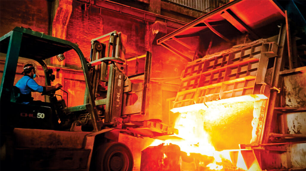 Bahan baku utama, seperti afalan, ingot, plat murni, sisa potongan billet, serta bahan atau profil yang tidak memenuhi standar produksi, dipanaskan dalam tungku pada suhu 700℃-800℃. Proses peleburan ini dilakukan menggunakan dua tungku dengan kapasitas produksi mencapai sekitar 1200 ton per bulan. Hasil akhir dari proses ini berupa billet aluminium dengan panjang 6 meter, tersedia dalam dua diameter, yaitu 3,5 inci dan 5 inci.