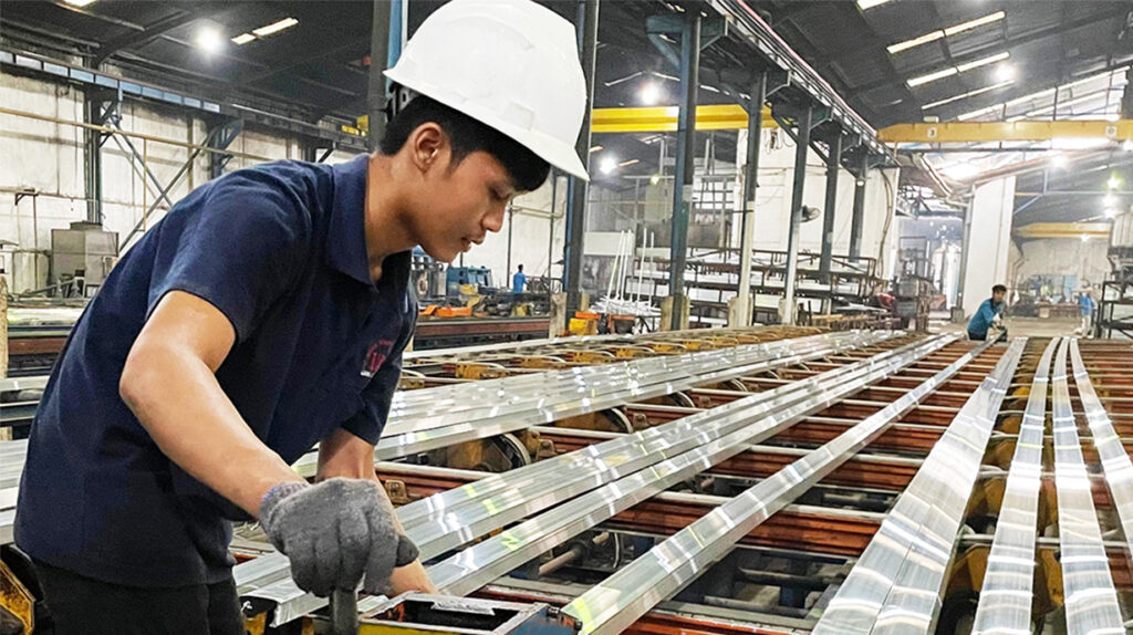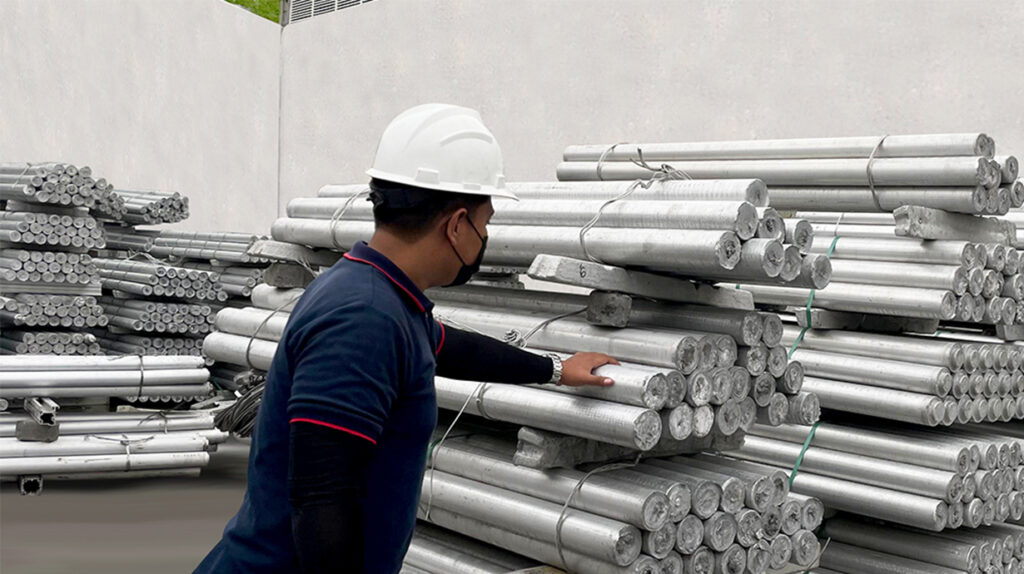 Billet yang telah dipotong dimasukkan ke dalam mesin ekstrusi, kemudian profil yang dihasilkan ditarik menggunakan puller untuk memastikan kelurusan. Mesin ekstrusi dengan diameter billet 3,5 inci memiliki kapasitas produksi hingga 60 ton profil, sementara mesin dengan diameter billet 5 inci mampu menghasilkan 120 ton profil. Dengan kapasitas tersebut, total produksi mesin ekstrusi kami dapat mencapai 480 ton per bulan.